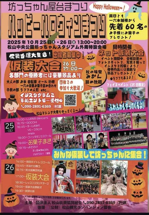 【イベント’25】坊っちゃん屋台まつり「ハッピーハロウィンまつり」開催!松山が魔法に···
